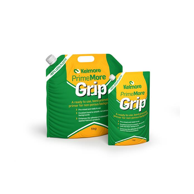 Kelmore’s PrimeMore Grip is a ready to use, one coat, bond promoting primer. Designed to adhere to non-porous internal wall and floor backgrounds, this product dries with a textured, keyed surface enabling strong adhesion of subsequently applied adhesives, and levelling and smoothing compounds. To help achieve total and uniform coverage, PrimeMore Grip is pigmented green for enhanced visibility during application.